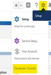 Step 1 : On the top right corner you can see the Setup icon, Click on it & open the Developer console from there.