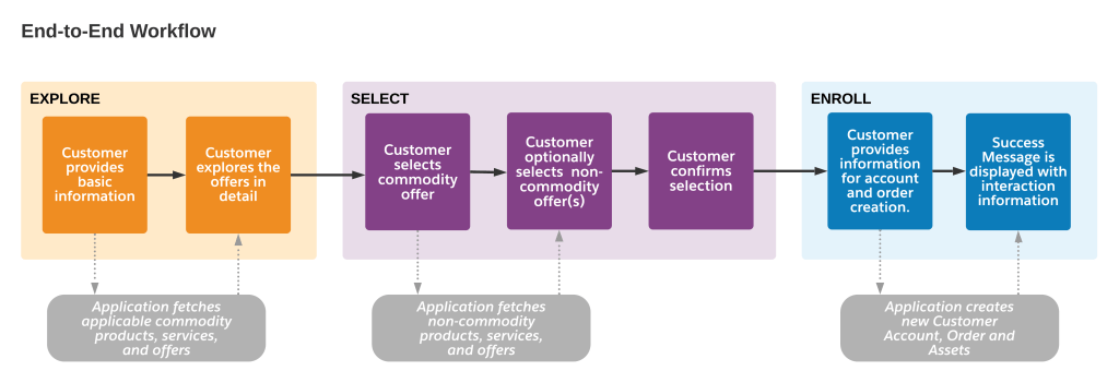 Customer Acquisition Management is a ready-to-use application that can be directly integrated into a community portal of a utility company. However, it is configured to work by default with the reference product model. As each utility company organizes its product models in different ways, Customer Acquisition Management application is designed so that it can be quickly configured for use with different product models.