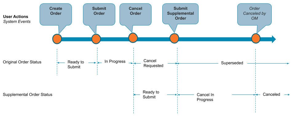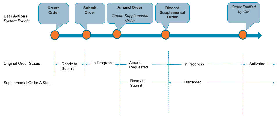 You can change an in-flight supplemental order using the In-Flight Order Amendment feature. When you submit a supplemental order to OM but want to change it before it is fulfilled, the order is said to be in-flight.